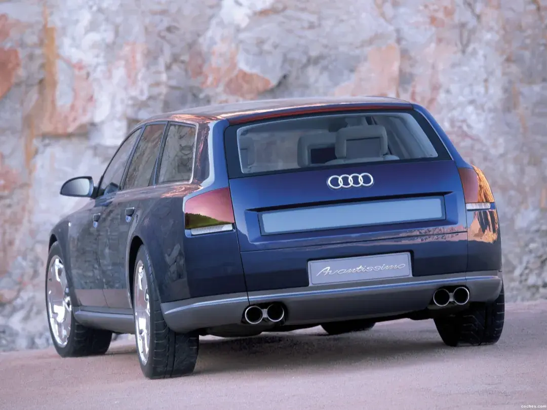 這款名為奧迪Avantissimo的概念車在2001年法蘭克福車展上展出,由Audi Space Frame設計,擁有修長的車身和D級車的軸距,從前后車門可以找到A8的影子。