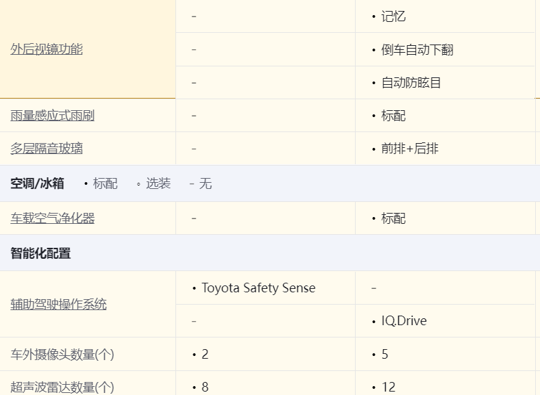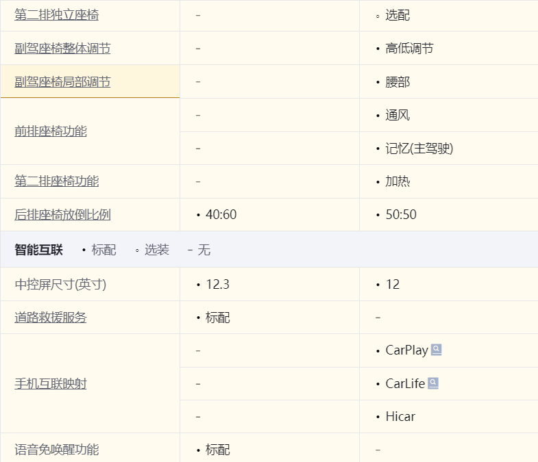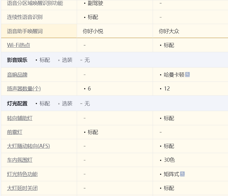 配置方面,大眾途昂 出眾款 380TSI 四驅龍祥版和豐田漢蘭達 雙擎 2.5L 四驅尊貴版 7座價格相差800元,具體配置,請參考配置表,左側為漢蘭達,右側為大眾途昂。