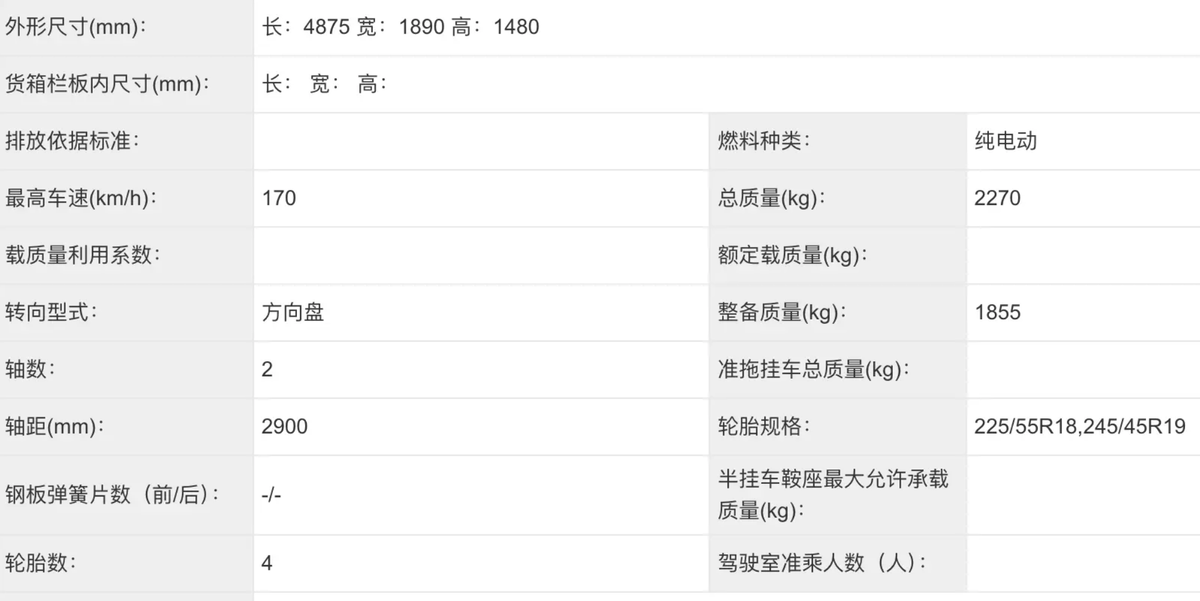 可以預計,深藍L07將與深藍在售車型一樣,在動力方面繼續提供增程/純電動兩種方案。根據工信部登記的信息顯示,純電版深藍L07的長寬高分別為4875/1890/1480mm,軸距達到了2900mm。極速來到了170km/h,整備質量和總質量分別為1855、2270kg。