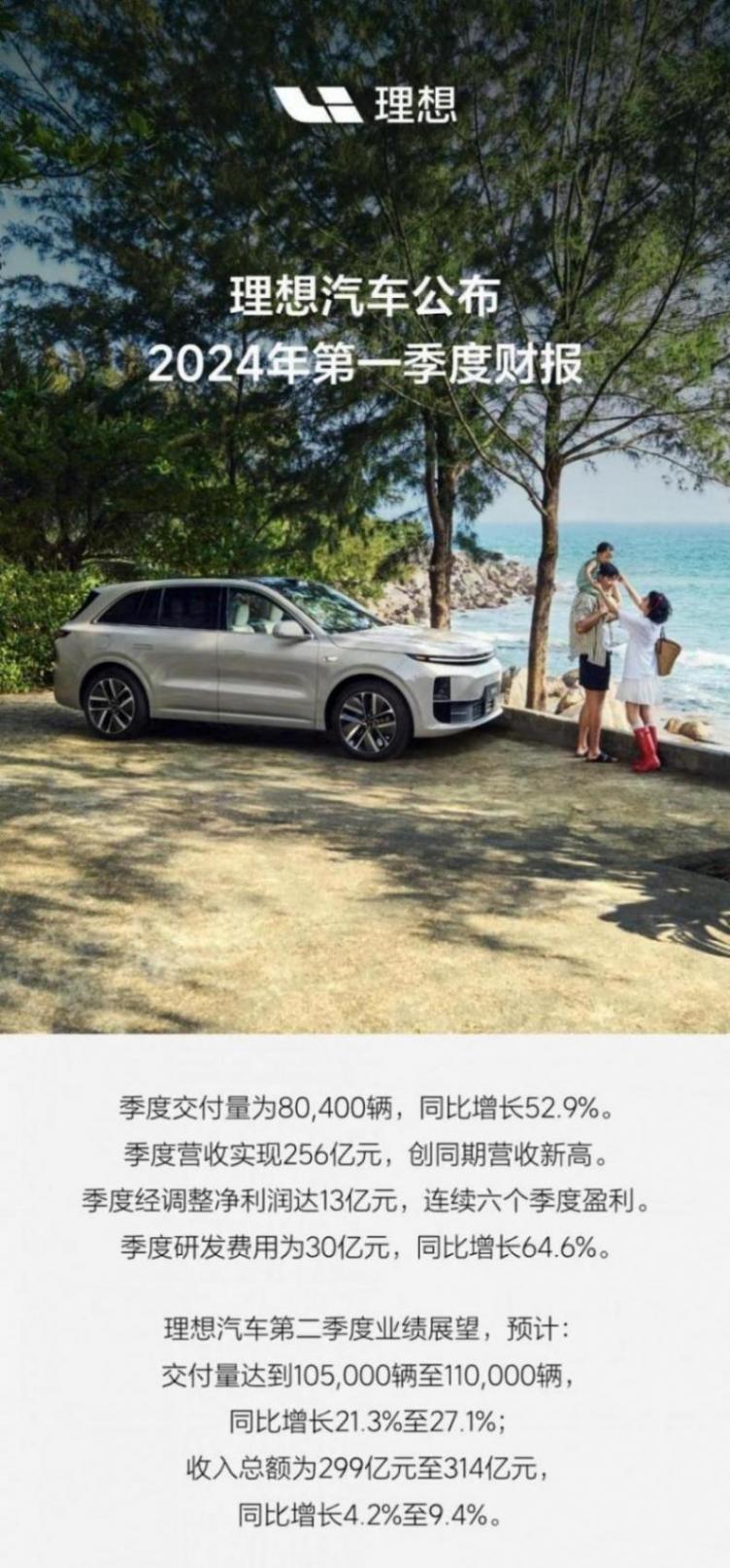 理想汽車2024年一季度營收256億 同比增長36.4%