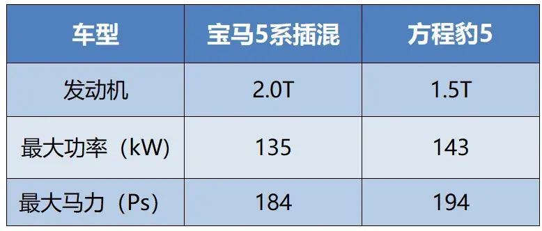 以寶馬5系插混為例,月均銷量不到100輛,其售價高達50.95-54.65萬元,而WLTC純電續(xù)航里程只有73km,不支持快充,中低配版本更是沒有L2輔助駕駛。盡管該車搭載2.0T發(fā)動機,最大功率135kW,最大馬力184Ps,但動力表現(xiàn)卻不及方程豹5的1.5T發(fā)動機。