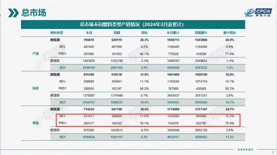 此外,插混汽車已成為市場最大的熱點。根據(jù)乘聯(lián)會的統(tǒng)計,2023年插電式混合動力汽車(PHEV)銷量為259.2萬輛,同比增長82.5%,增速接近BEV(20.8%)的4倍。今年1-3月,PHEV的銷量增速更是接近BEV的5倍。
