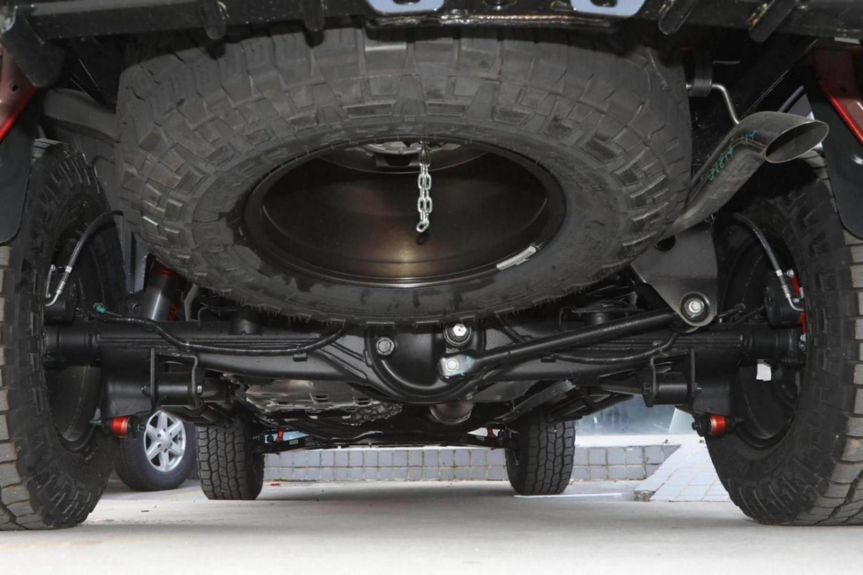 敢探者全系均采用了分時四驅的驅動形式,標配了后橋差速鎖,并支持選裝前橋差速鎖,同時在懸掛類型上,該車采用的是前雙叉臂式獨立懸掛,后多連桿式非獨立懸掛,尤其說一下它的后懸掛,采用了皮卡車型中很少見的多連桿+瓦特連桿的組合,可以有效減少坑洼路面對車車內的沖擊,帶來更好的舒適性和底盤行駛質感。