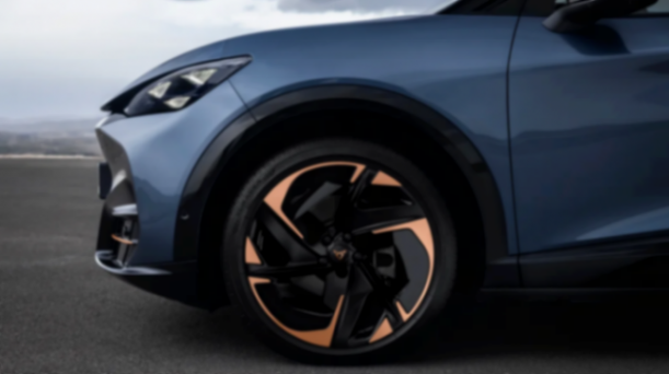 在車身側面,新車與ID.UNYX幾乎完全一致,只是輪轂金色更深,采用了特殊的撞色布局,增添了運動的感覺,畢竟Cupra品牌目前在歐洲主銷運動豪華,整體都是這個調性。溜背式是車頂過渡,大傾斜角度的隱藏式A柱等元素,隱藏式車門把手等細節都保持一致。在車尾部分,整體的線條也基本相同,尾箱蓋末端有著翹起的小尾翼,最突出的還是由車標引出的,貫穿式尾燈,有著復雜的三角形結構,與車頭的風格形成對應。