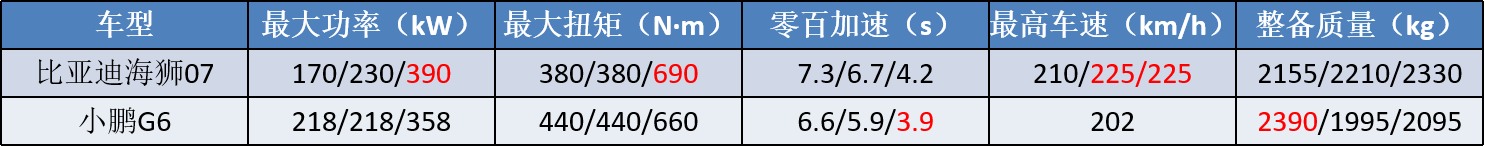 在雙電機版本車型上,小鵬G6的動力參數是遜色于海獅07的,但有意思是,在零百加速上,G6的3.9秒優于海獅07的4.2秒,之所以出現這個結果,海獅07整備質量重兩百多千克至關重要。