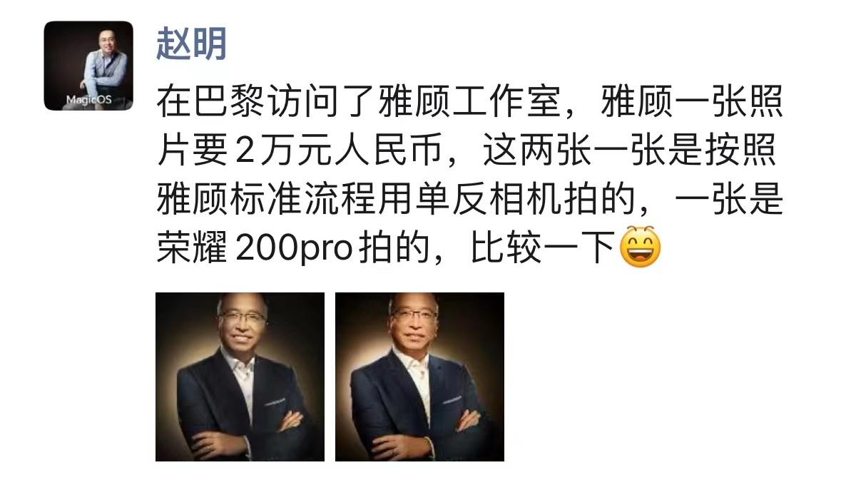 上半年新機(jī)發(fā)布的密集期到了,其中榮耀200系列、OPPO Reno新品都是行業(yè)關(guān)注的待發(fā)布新機(jī)。近日,榮耀CEO趙明微博發(fā)布兩張人像照,分別為專業(yè)攝影機(jī)構(gòu)巴黎雅顧攝影工作室和榮耀200所拍攝。而令人意外的是,使用榮耀200系列手機(jī)拍攝的人像與雅顧價值2萬的作品效果幾乎無異,很難分出高下,在業(yè)界掀起了不小的波瀾。