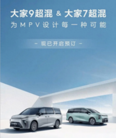 上汽大通宣布,旗下兩款MPV車型——大家9超混與大家7超混,將于6月7日正式上市。目前,這兩款車型已經(jīng)開啟預(yù)定。