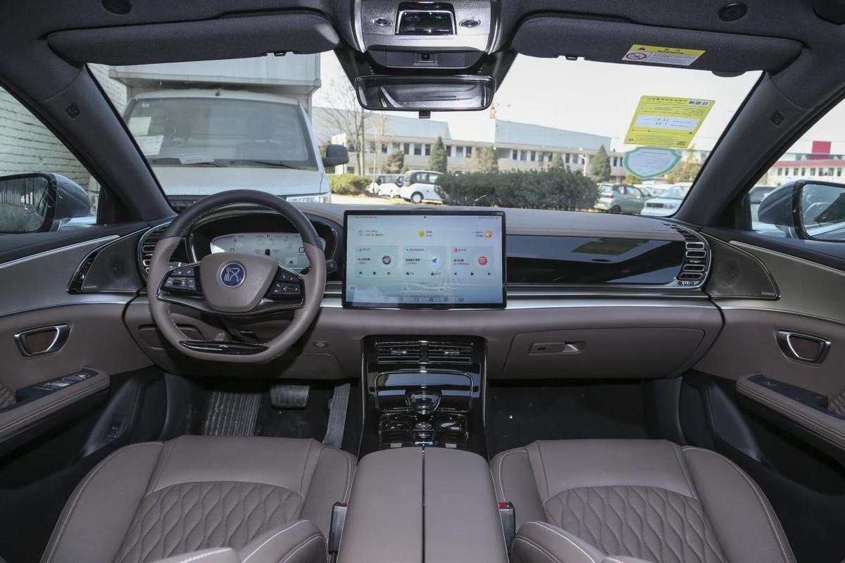 內(nèi)飾方面比亞迪-漢整體的是一種沉穩(wěn)豪華的感覺(jué),中控區(qū)域配備了可旋轉(zhuǎn)的15.6英寸大屏,
