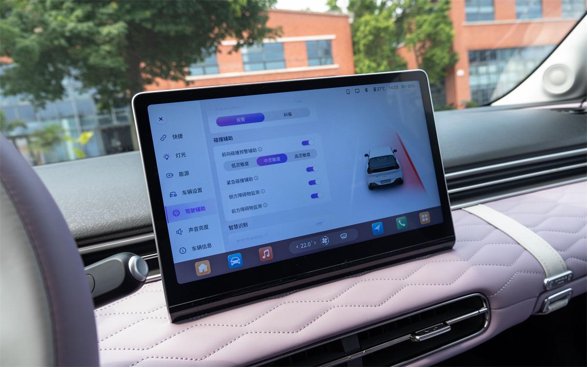 此外,東風納米01還配有L2智能駕駛輔助系統,總體來說這套系統還是以輔助為主,功能啟動以后,駕駛員保持最主要的控制權限。不過在高速公路、城市快速路上面,這套功能已經相當的夠用,減速和提速都很順暢,并且車距可以保持在比較安全的范圍。