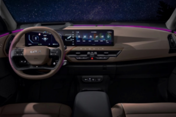 起亞EV5跟外觀塑造相似,中控臺實現了多曲面與折現的立體變化,撞色裝飾面板會產生跨區域的環繞,而且它也使用了與別克E5一樣的貫穿屏,但車輛有更靠近副儀表臺的延展,而下方則布局了大尺寸物理按鍵,操作起來會更方便,用戶從傳統油車過渡到起亞EV5,也能快速適應。