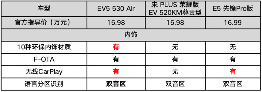 在新能源市場競爭進入白熱化階段后,制造商們紛紛上演“內卷戰”、“價格戰”,哪怕是15萬級純電SUV的產品也同樣變得十八般武藝精通,而放在兩年多前,這個價位對于純電SUV來說只能入個門。這里所要看到的起亞EV5(530 Air/15.98萬元)、比亞迪宋PLUS EV(520km 尊貴型/15.98萬元)以及別克E5(先鋒Pro版/16.99萬元),就是美系、中系與德系的杰出代表,我們選擇價位相對接近的版本,看看這三款誰更符合當下購車需求的變化:
