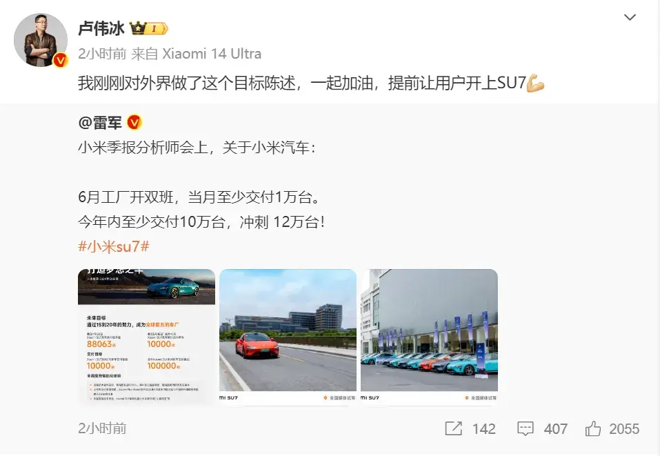 年目標提升至12萬:小米汽車6月開雙班生產,高層稱“不差訂單”