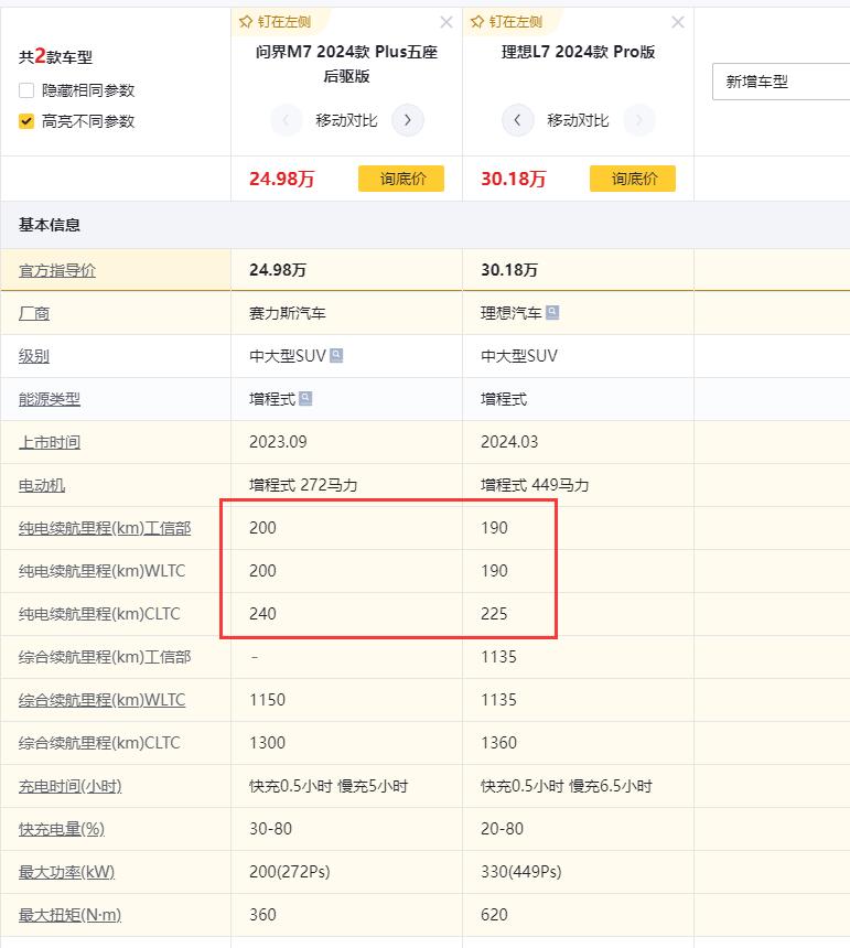 對于車主來說,哪怕再怎么不會算賬,基本算術題也是能算出來,8塊錢一升的油和六七毛錢一度的電,對比起來,大部分的車主,都會選擇用電,而不是用油,這時候,增程車的短板就暴露出來了,他們的純電續(xù)航普遍都很短,不管是問界M7還是理想L7,他們的純電都才200公里,而此時,樂道L60的最大優(yōu)勢就能暴露出來了。