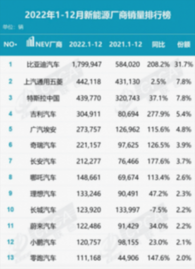 隨后,哪吒汽車繼續上演“我命由我不由天”,2020-2022年,哪吒汽車累計銷量較2019年翻了約15倍,2021年,也就是周鴻祎投資哪吒汽車的當年,其年銷超過6.9萬輛,同比大漲362%,到2022年,這個數字暴增至15.2萬輛(實際交付14.86萬輛),哪吒汽車由此躋身2022新能源汽車銷量前十強,成為新勢力中排名最高的一位,理想、蔚來、小鵬、零跑都被它甩在身后。