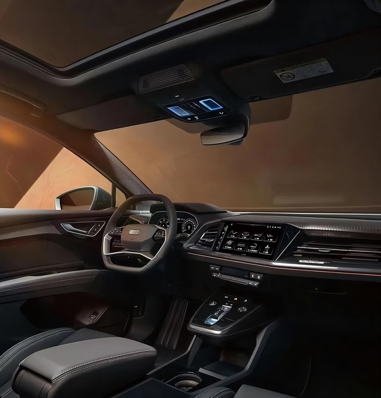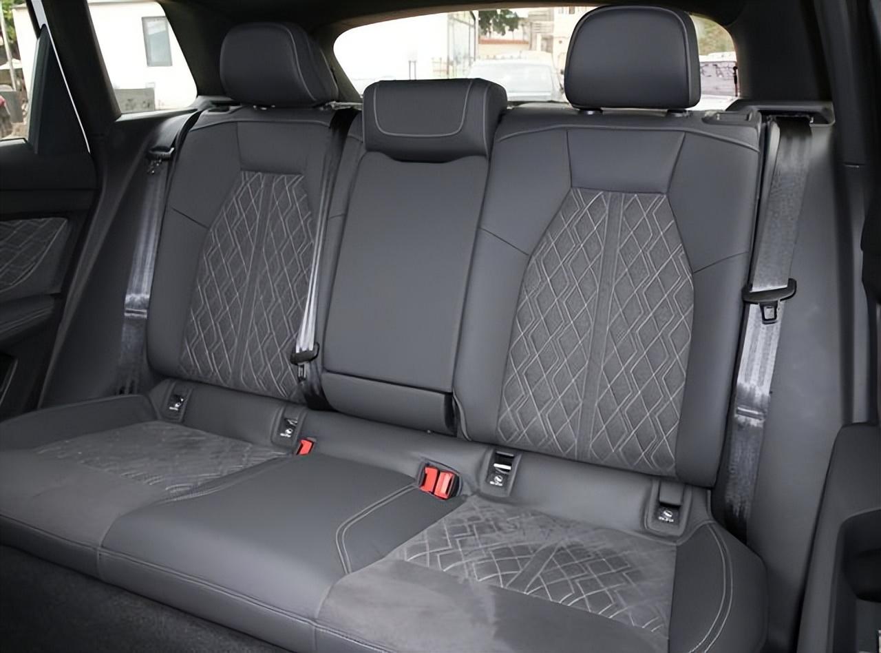 奧迪Q4 e-tron冠軍紀念車身依舊采用了轎跑SUV的設計,與普通版車型不同的還有它采用了黑色的車窗裝飾條、黑色的車頂行李架以及黑色的側裙,R21英寸的鍛造輪圈搭配著235/45 R21、255/40 R21的寬胎和大尺寸剎車卡鉗,也極具運動氣息。車身的長寬高分別為4588*1865*1626mm,軸距達到了驚人的2765mm。車內空間早已超越了同級別競爭車型。車內配備了與奧迪A8L霍希版同款的danamic對比色菱形雙拼座椅,內座椅使用Laedana面料,用料更加高級,填充厚實,擁有非常不錯的乘坐體驗感。支持多向電動調節、腿托調節腰部支撐,加熱功能,支撐感和柔軟度適中,搭配雙溫區自動空調、多層隔音設計,再配上SONOS豪華音響系統,坐在車內簡直就是一種享受。