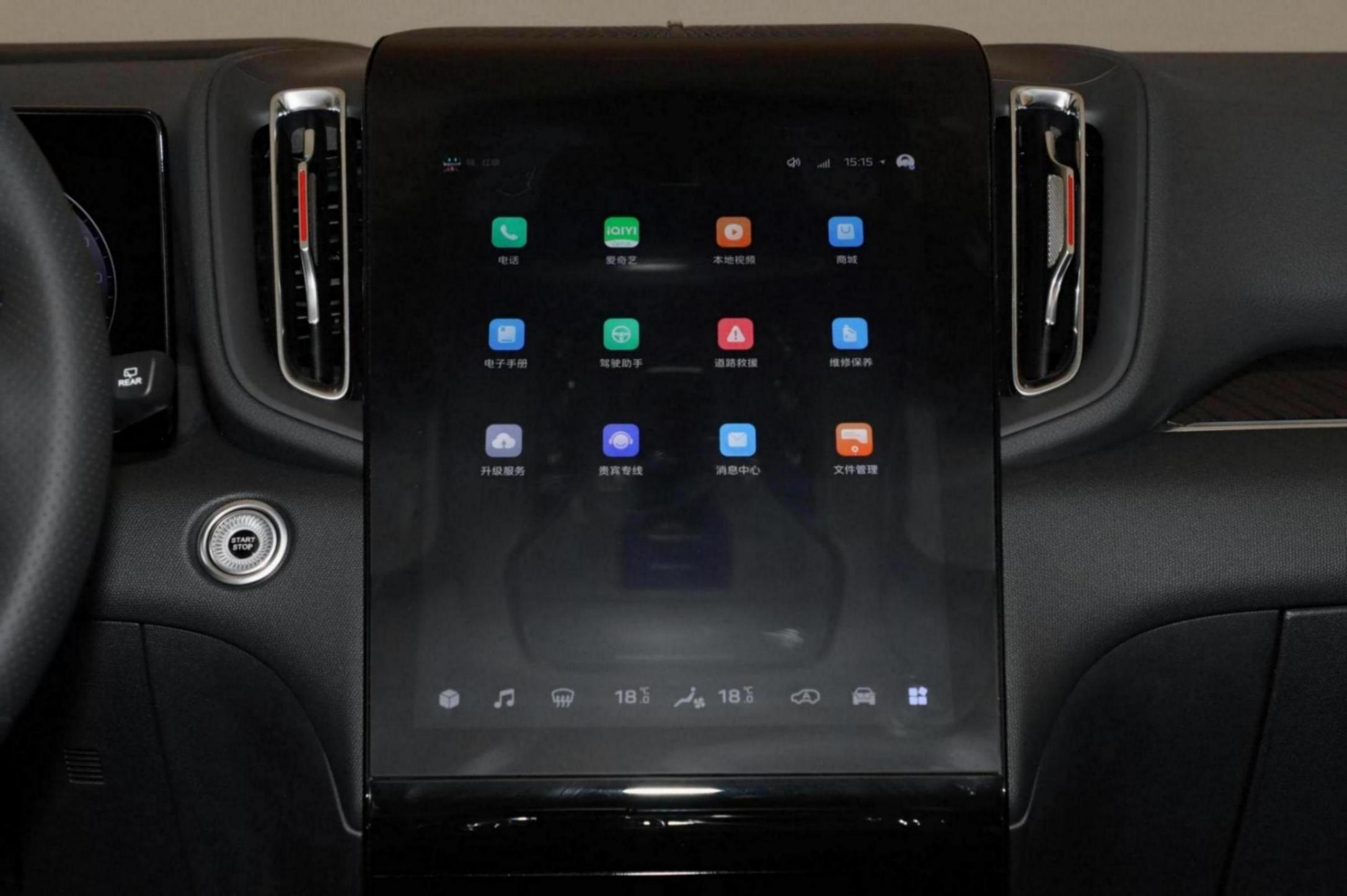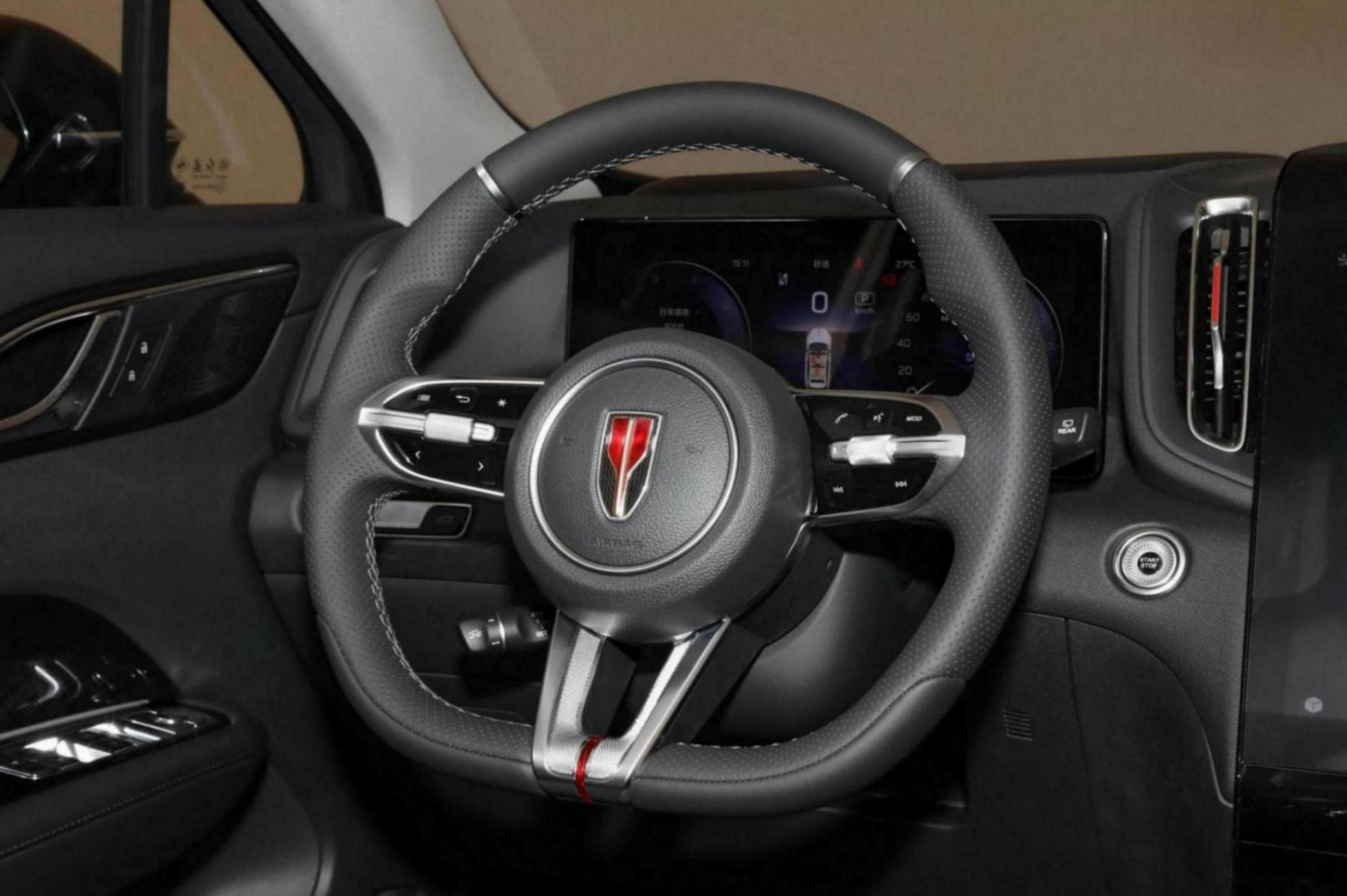 內飾方面,紅旗HS3的內飾采用經典T字型布局設計,整體的內飾做工及用料相比其他車型則稍顯廉價,但在同級別車型中,整體的材質還是不錯的。可以看到這款車采用了平底式的三幅式多功能方向盤。空調出風口邊緣使用銀色鍍鉻亮條進行裝飾,同時這款車也采用了12.3英寸的全液晶儀表盤以及12.6英寸的中控屏幕,車機搭載了旗偲車載智能系統,功能上配置了GPS導航、藍牙車載電話、車聯網、4G網絡、OTA升級以及連續性語音識別功能。