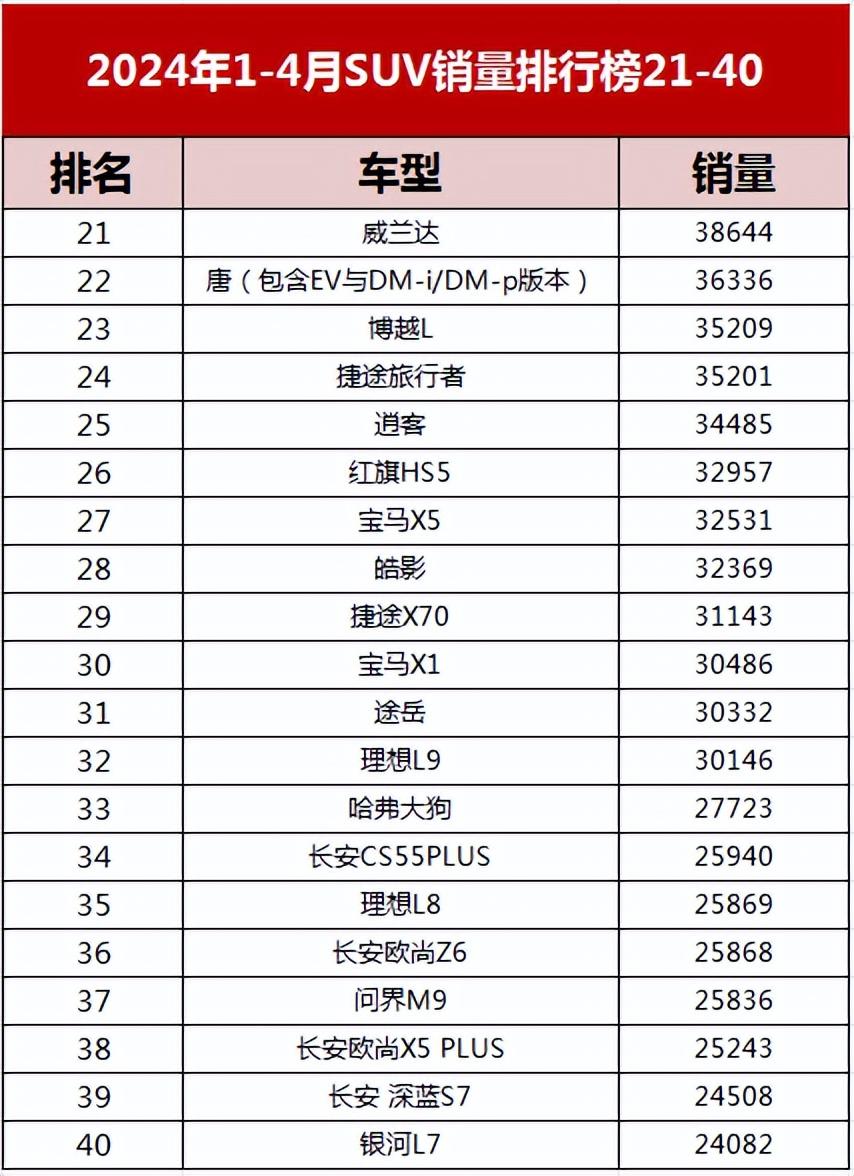 SUV車型是中國汽車市場中最受歡迎的車型之一。因此,這塊市場也就成了各大車企的必爭之地。而在1-4月的SUV銷量榜上可以看到,一些合資車企的陣地已經被攻陷。