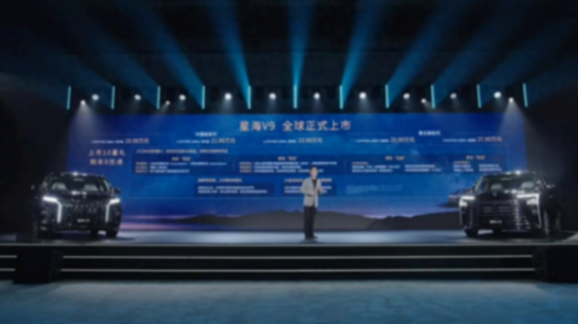 內飾方面,星海V9有著明顯商務風,駕駛艙采用雙色設計,環抱式座艙。駕駛艙前圍配備12.3英寸液晶儀表屏+16.2英寸觸控液晶屏+12.3英寸副駕娛樂屏,組成長達41英寸的前排智能三聯屏,帶來強悍的視覺沖擊。內置8155芯片,并融入遠程控制、智能語音等先進的智能互聯功能。