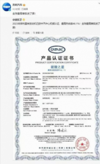 同一時間,吉利也發布了自己的發動機熱效率數據,達到了46.1%,剛好勝過比亞迪的46.06%,比亞迪高管也發文稱,不玩虛的,上市即交付。這有點暗自較勁的意思啊。