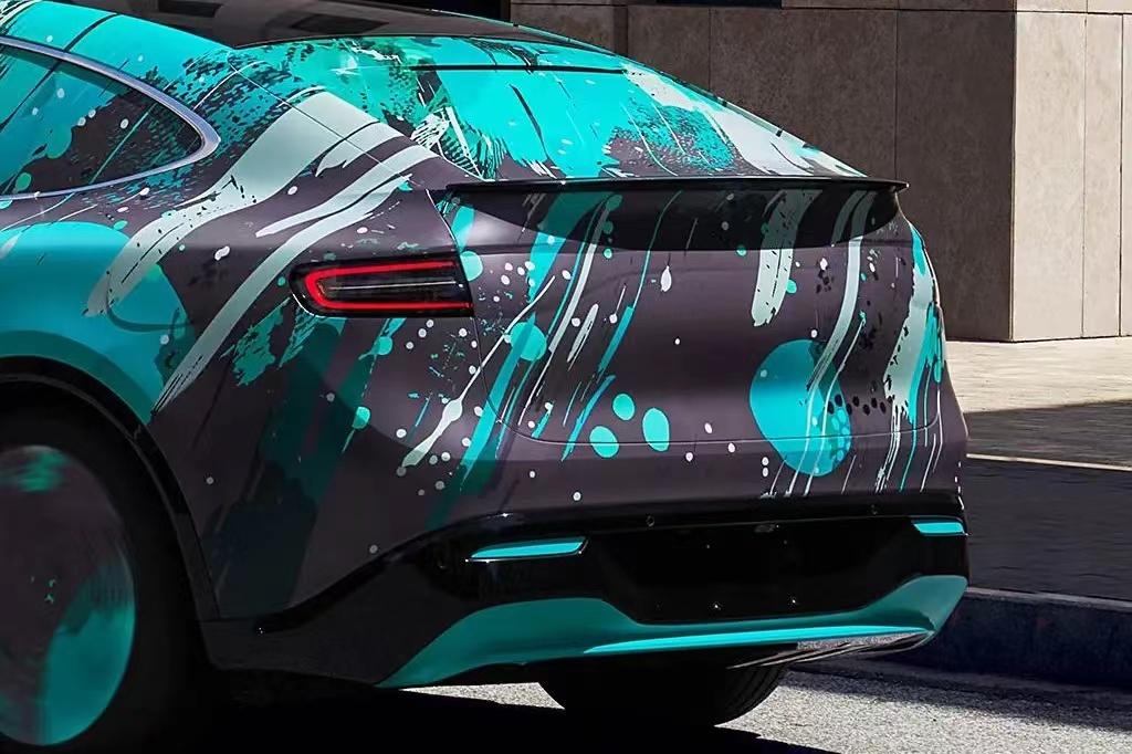 側面通過溜背式造型令整車看起來頗顯年輕運動,車身還加入有大量不同型面的線條,有助于提升立體效果。車頂配有瞭望塔式激光雷達,我們猜測應該是和問界M9相同的192線高精激光雷達,這也預示著新車或將搭載華為最新的ADS 3.0高階智駕系統。尾部的設計比較簡潔,向下彎折的貫穿式尾燈我們已經在鴻蒙智行旗下多款車型上見過,點亮以后擁有不錯的辨識度。尾燈組上方還加入了一體式擾流板,底部同樣是梯形后包圍,與前臉相呼應。
