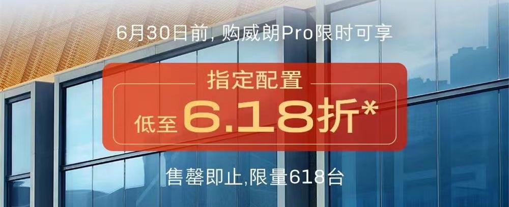 其中,威朗Pro指定配置低至6.18折,限量618臺。這款車的官方指導價為12.89萬—15.89萬元,但官方并未明確指出到底是哪款配置可享受6.18折限時優惠,我們以最低配樂逸版為例,優惠完之后的售價為7.97萬元。
