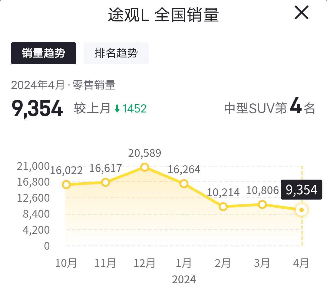 不過,隨著最近兩年自主品牌的快速發展,像長安CS75 PLUS、吉利星越L這樣的車型在產品力不輸于途觀L的同時,售價卻更便宜,加上還有以比亞迪宋PLUS DM-i等為代表的新能源車型,因此途觀L的市場競爭壓力變得更大,只能采取以價換量的策略來穩住陣腳。即便如此,銷量相比巔峰時期也下滑不少。
