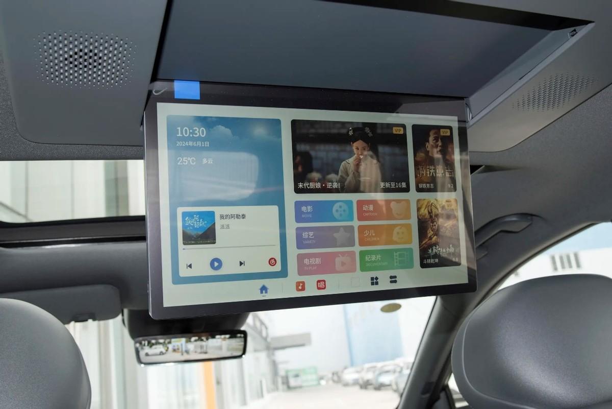 同時(shí),奕派008還充分挖掘了車內(nèi)空間的利用能力,增加了很多適合全家出行的配置,譬如車頂?shù)奶齑氨环譃榍昂髢刹糠郑挤謩e帶有電動(dòng)可調(diào)的遮陽簾。而且前后天窗的中間部分安裝了一塊15.6寸的吸頂屏,·支持觸控功能,帶有豐富的多媒體生態(tài)和資源。