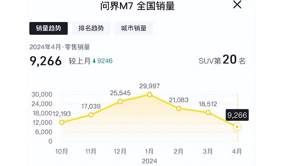 華為在問(wèn)界身上想要保持銷(xiāo)量漲下去,新訂單不斷增加,這點(diǎn)不會(huì)錯(cuò)。畢竟,除了產(chǎn)能和市場(chǎng)競(jìng)爭(zhēng)的壓力之外,它吃過(guò)懈怠的虧。2022年7.5萬(wàn)輛做銷(xiāo)量黑馬,2023年前9個(gè)月銷(xiāo)量不斷腰斬,直到被問(wèn)界M7救回來(lái)。
