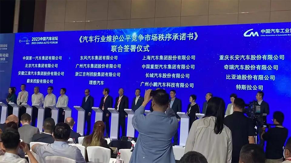7月6日是個值得記住的日子,2023年,汽車降價潮或者價格戰開打了整整半年之后,中汽協出面牽頭,16家車企共同簽署了《汽車行業維護公平市場秩序承諾書》。參與者的名單都是巨頭,包括一汽集團、東風汽車集團、上汽集團、長安汽車、北汽集團、廣汽集團、中國重汽、奇瑞汽車、江淮汽車、吉利控股集團、長城汽車、比亞迪、蔚來、理想、小鵬、特斯拉。