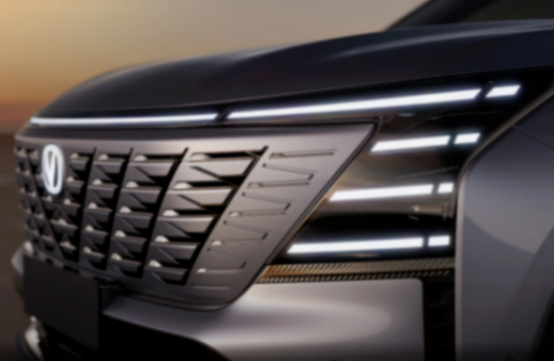 在外觀設計方面延續了此前CS75 PLUS整體的輪廓,但造型更加科幻。中網為無邊界的設計,從官圖來看中間的車標還支持點亮了,下方梯形的進氣口,貫穿式的LED日間行車燈更加科幻,兩側還新增了橫向的燈條點綴。