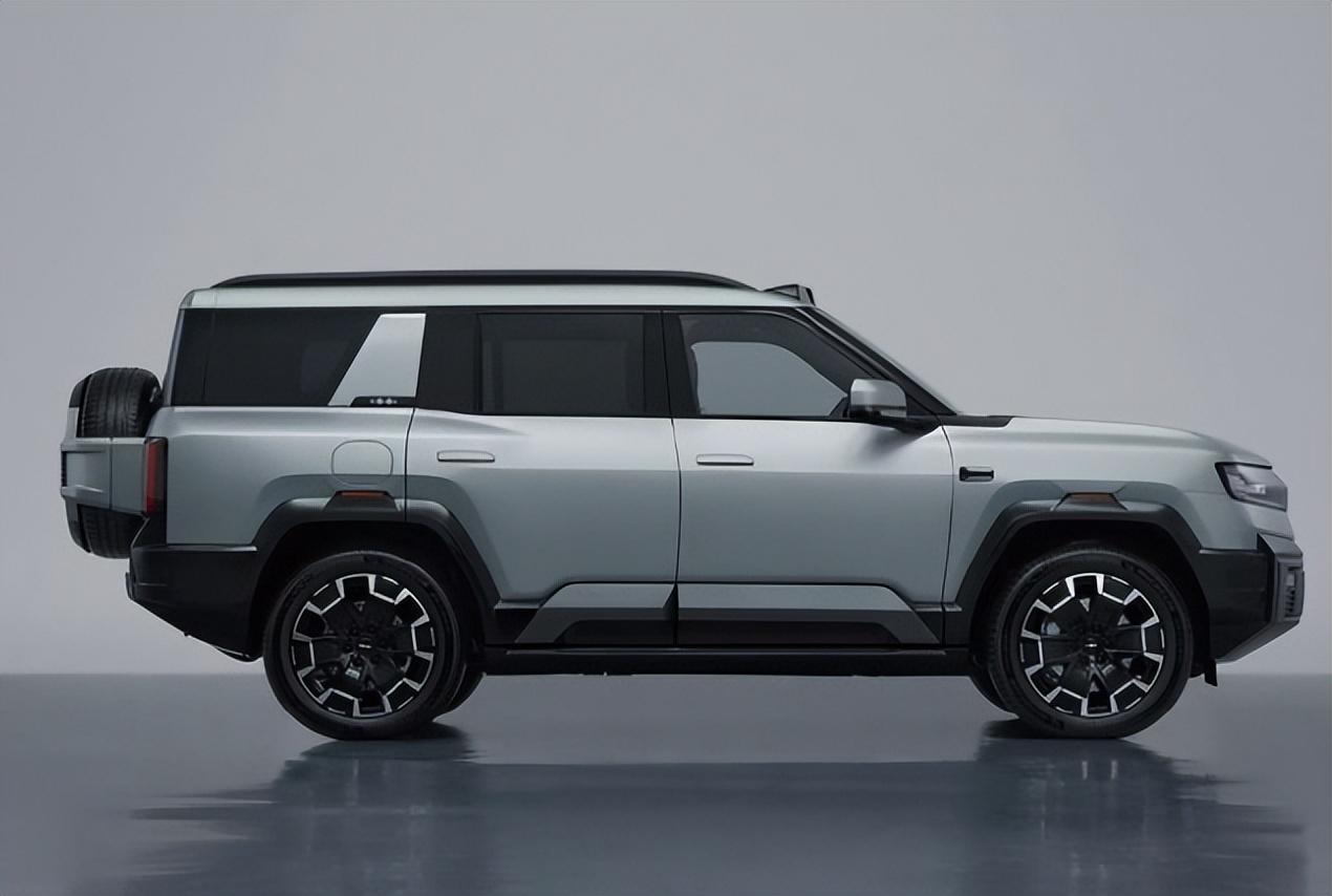 從車型側(cè)面我們能夠明顯發(fā)現(xiàn),這款方程豹豹8采用的類似于路虎衛(wèi)士一樣的厚重感設(shè)計(jì)。除了擁有懸浮車頂以外,熏黑的隱私玻璃,梯形樣式的輪眉設(shè)計(jì),均彰顯了硬派感。