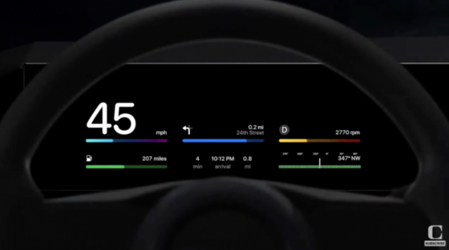 蘋果曾在兩年前的WWDC上帶來了 CarPlay 2.0,在演示demo中,這套系統接管了汽車的整個儀表和中控,包括車速、轉速、檔位、油表等行車信息,還能控制空調,每一個界面和動畫都非常的精致且優雅。