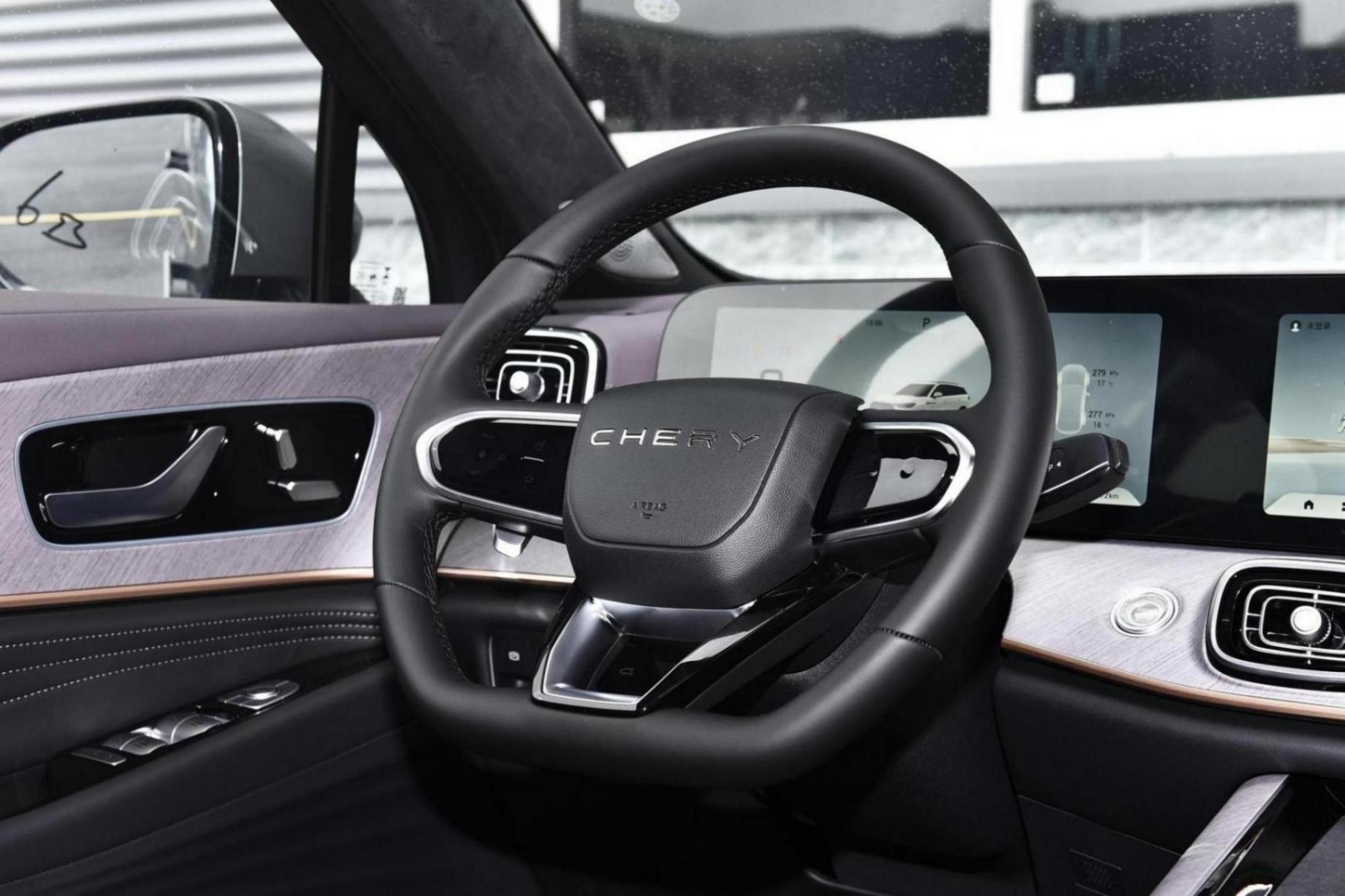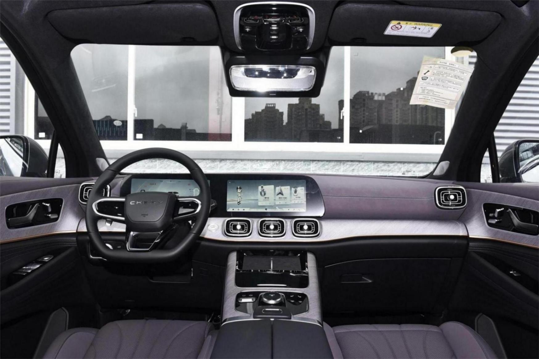 內飾方面,可以看出瑞虎9的內飾設計風格要比之前瑞虎系列SUV的內飾更有檔次,氛圍營造非常出色,淺紫色以及金屬飾板的應用,這種高級的、豪華的質感很突出。方向盤的皮質握感細膩,軟硬也比較適中,兩側的多功能按鍵采用了一體式面板,不過依然是普通的物理按鍵,方向盤后面可以看到換擋撥片。