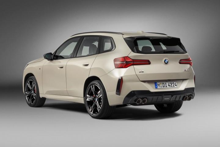 大改款 X3 車側輪廓更加凸顯長車頭的設計,整體線條較現行車款更為方正,擁有前后外擴的輪拱,同時搭配新世代車款慣用的平把式車門把手,車尾上方提供造型立體的尾翼,并朝后擋兩側延伸,透過「T-Shaped」LED 尾燈組搭配立體尾門線條,牌照的位置自尾門中央移至后保杠處,一般車型采隱藏式排氣管設計,僅 M50 xDrive 提供雙邊雙出排氣尾管的性能化扮相。