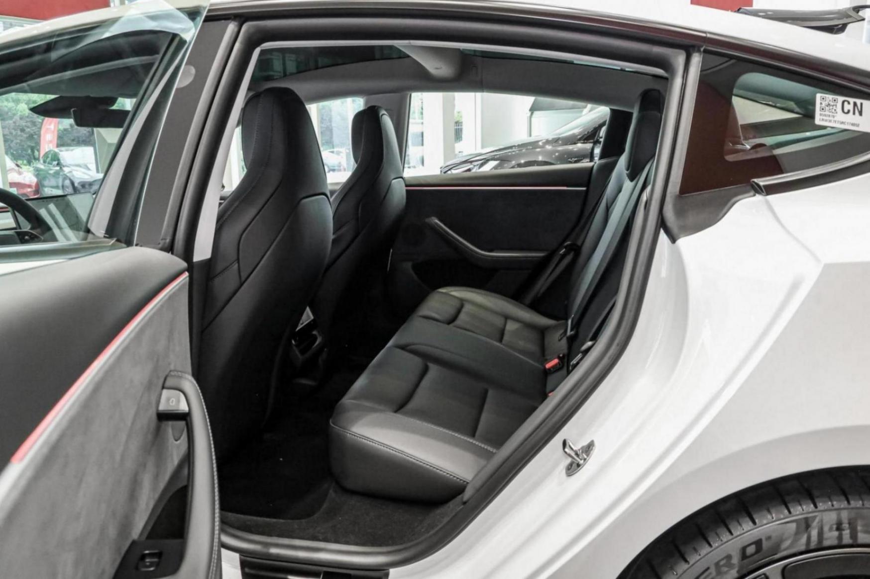 新車基本延續普通版Model 3的外形,但在細節上也有進一步提升。前臉最大的改動就是在兩側位置新增了通風口,看起來更加層次分明。新車將提供全新19英寸曲速輪圈,輪胎尺寸為前235/40、后265/35,并且依舊是有特斯拉高性能版車型標志性的紅色高性能卡鉗。車尾增加了碳纖維小鴨尾擾流板,下方車標也采用了Plaid版本車型的“無限”樣式,整體增加了新車的運動屬性。