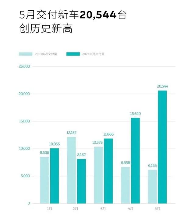 比較意外的是阿維塔在本月也率先給出了銷量報告,像該品牌在5月份的交付量為4569臺,同比增長了163%,雖然銷量不高,但也總算是有進步。
