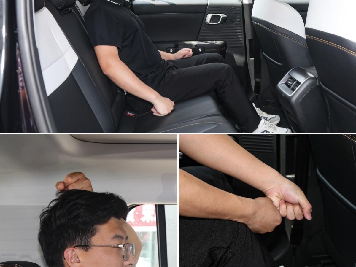 北京BJ30定位緊湊型SUV,軸距2820mm,長寬高尺寸各對應4730x1910x1790mm,據此我們對后排空間進行了實際測量,身高175cm的成人端坐后排,頭頂剩余1拳余量,腿部剩余空間在2拳以上,乘坐寬裕不拘謹。