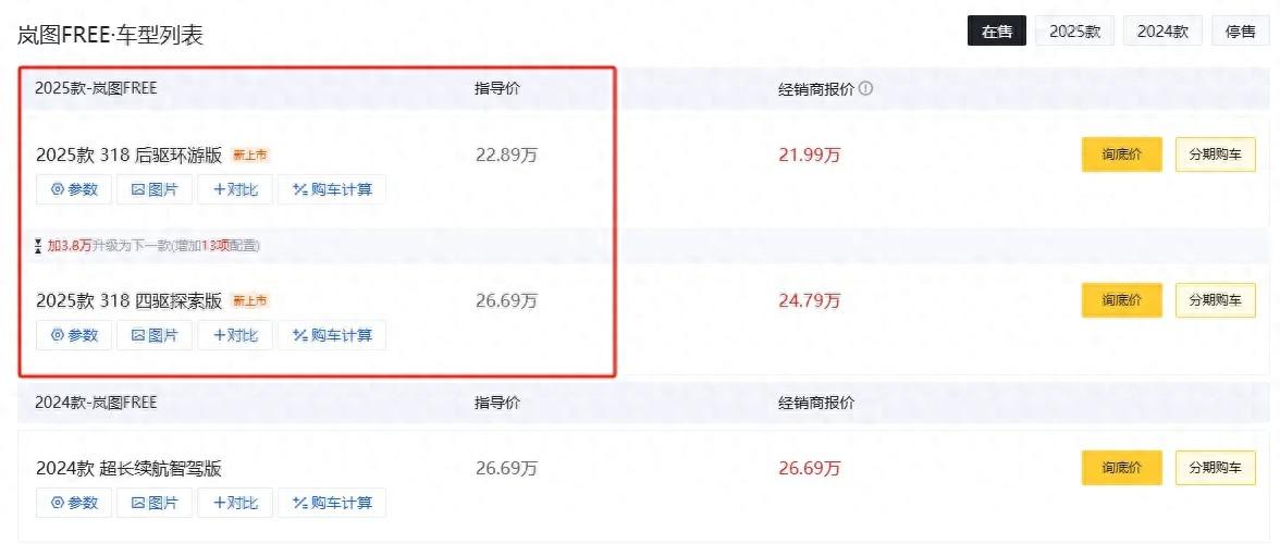 嵐圖FREE這款C級豪華SUV采取了降價增配的銷售策略,隨著新嵐圖FREE318于6月份上市,其售價持續下降,指導價從22.89萬起。官方還推出了高達29294元的限時購車權益,活動截止日期為7月31日。在各地區的終端市場上,新車上市時也伴隨著一定程度的優惠,比如在上海地區,實際售價為21.99萬起。考慮到官方推出的限時優惠,這款車的起售價將低至20萬元以下,在當前市場條件下,優惠后的售價仍相當有吸引力。