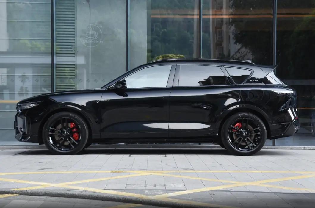 新車的外觀顏色選項除了黑色外,還包括灰色、白色和綠色。側面配備黑色鋁合金輪轂和紅色剎車卡鉗,結合俯沖的車身姿態,展現出年輕運動的風格。該車是一款定位為中大型SUV,車身長度為4905毫米,軸距為2960毫米。前后均使用規格為255/45 R20的米其林輪胎,扁平比為45,旨在注重操控性能的同時兼顧一定的舒適度,單條輪胎的售價約為1600元。尾部設計采用箭羽式尾燈,配合上翹的頂翼和豐滿的輪廓,展現出時尚動感的氛圍。