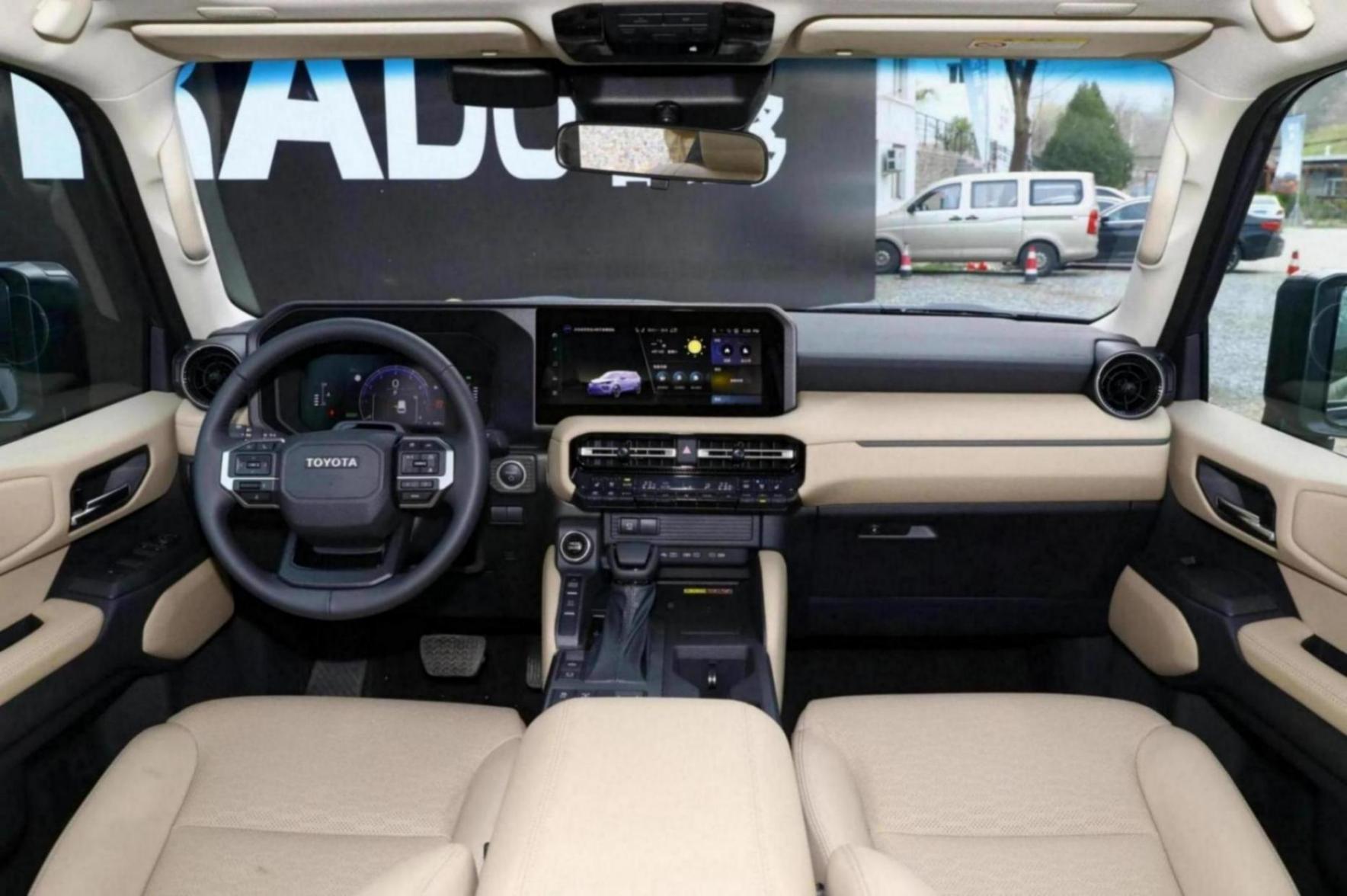 全新普拉多的內飾設計非常硬朗,座艙內采用硬朗的線條進行裝飾。中控臺采用雙色設計,形成強烈的視覺層次感。除了大屏幕外,中控臺還配有許多功能按鈕,操作便捷。車輛提供2+3和2+2+2兩種座椅布局選擇,座椅采用真皮材質,前排座椅支持加熱和通風功能。在空間方面,身高175厘米的乘客乘坐前排時,頭部空間寬敞,第二排座椅可前后調節,同時照顧到第三排乘客,非常實用。