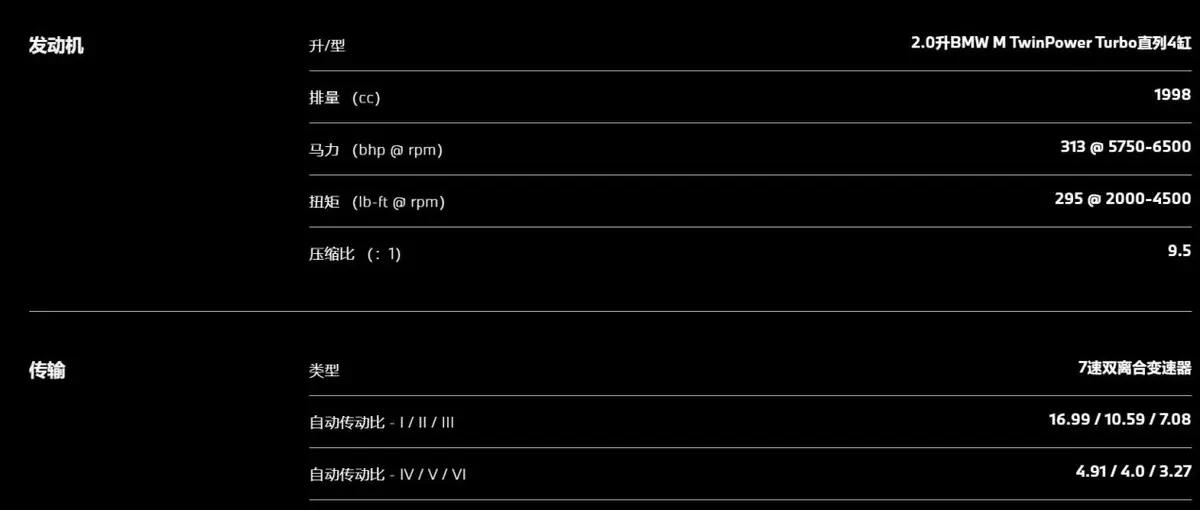 海外版本的X1 M35i搭載著一款2.0升直列四缸渦輪增壓發動機,歐版提供最大功率為221千瓦(300馬力),峰值扭矩為400牛·米,美版則為233千瓦(313馬力),同樣峰值扭矩為400牛·米。兩個版本均匹配7速雙離合變速箱,0-100公里/小時的加速時間為5.4秒。
