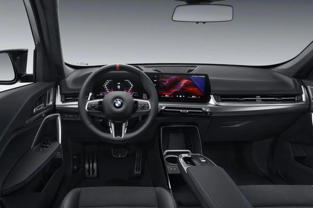 該車型的內飾與普通版的X1相比沒有太大的區別,在設計上顯得簡單直接。它配備了雙聯屏和三輻式多功能方向盤,馬鞍區斷開式設計,分為上下兩層,并提供了小撥片換擋功能。在材質上與普通版X1有所不同,座椅等位置采用Alcantara與皮革拼接的材質,主要是為了增強運動氛圍。