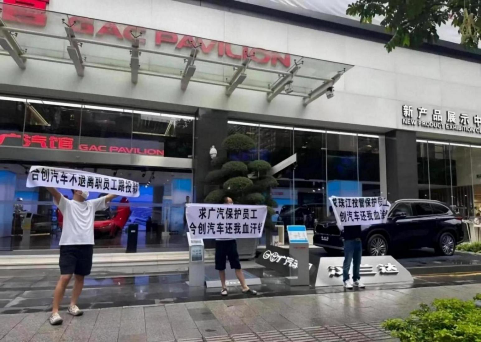 近期,合創(chuàng)汽車三名員工在廣汽中心門口拉起橫幅,內(nèi)容為“合創(chuàng)汽車不退員工跟投款”,“求廣汽保護員工,合創(chuàng)汽車還我血汗錢”,“求珠江投管保護員工,合創(chuàng)汽車還我血汗錢”。一時間,講合創(chuàng)汽車推上風(fēng)口浪尖。
