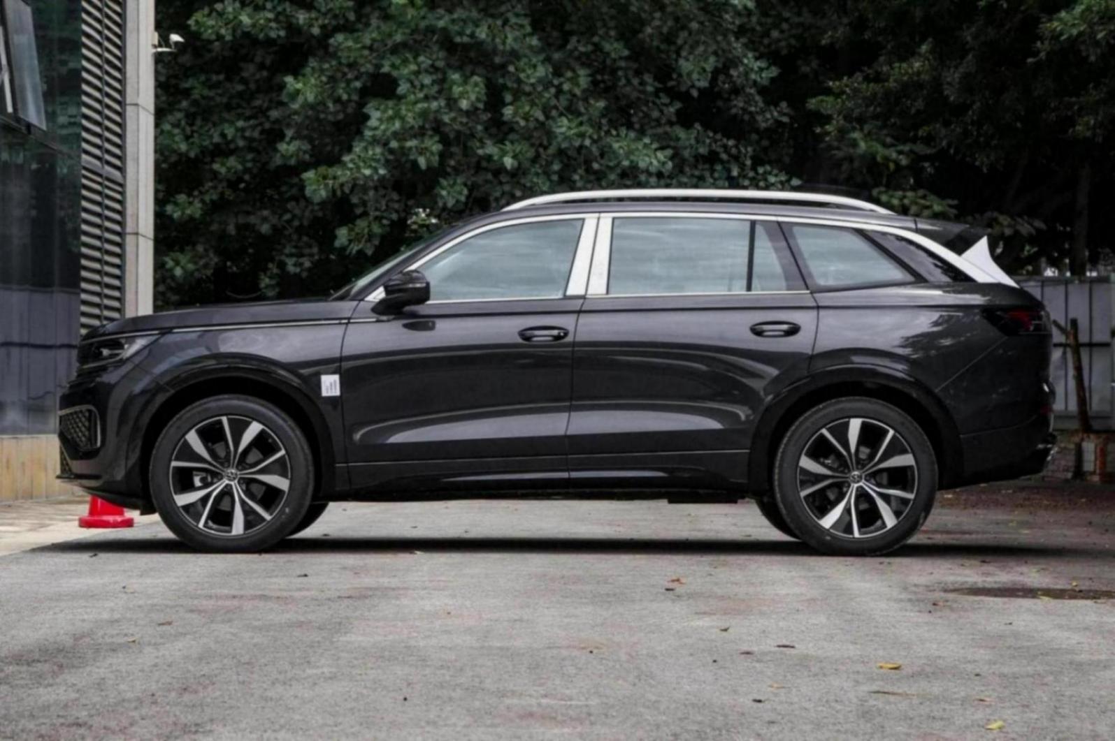 車身側(cè)面,修長的肩線從車頭貫穿至車尾,賦予了整車流暢的視覺感受。車頂下滑式的溜背造型設計,不僅提升了運動感,還使得整車看起來更加動感。雙拼色輪轂搭配內(nèi)凹輪眉,進一步強化了車身的運動氣息。值得一提的是,該車配備的265/45 R21規(guī)格尺寸的輪胎,提供了出色的抓地力和行駛穩(wěn)定性,讓人在駕駛過程中更加安心。
