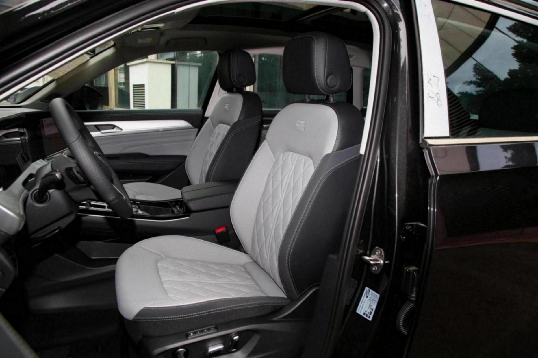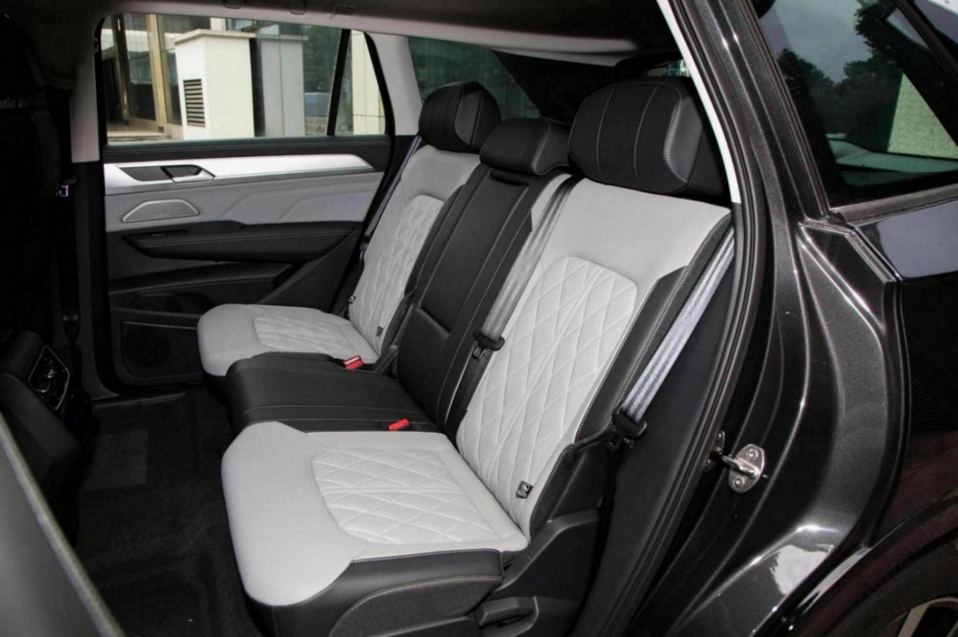 該車的車身尺寸長寬高分別為4949x2015x1772mm,軸距為2980mm,定位為中大型SUV。這樣的尺寸使得車內(nèi)五座布局顯得寬敞舒適,無論是前排還是后排,都能提供充足的乘坐空間。座椅采用黑白雙拼設計,搭配菱形縫線點綴,不僅視覺效果出色,還提供了良好的支撐和舒適度。小編身高178cm,調(diào)好前排座椅后,來到后排,腿部空間超過3拳,座椅靠背可調(diào)節(jié)幅度大,車頂配備了可開啟全景天窗,坐著舒服,不過中間地臺有一定的凸起。