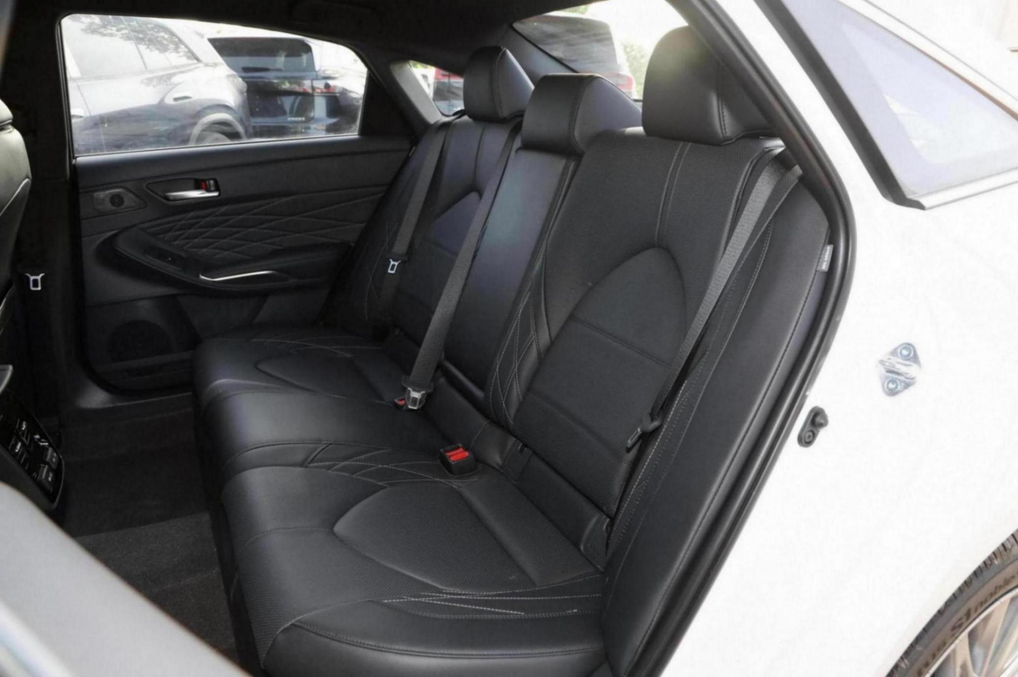 車子的車身尺寸長寬高分別為4990/1850/1450毫米,軸距為2870mm,定位為中型車,較大的尺寸致使車內擁有寬敞的空間表現,乘坐起來還是很舒適的。乘坐體驗方面,體驗者身高174cm,將前排座椅調整為合適坐姿后,頭部距離車頂約有1拳3指量,坐墊比較有內陷感,身體被包裹的得當,扶手箱足夠長,坐著舒服,來到后排,腿部距離前排座椅靠背約兩拳半余量,座椅靠背不算直,后排也提供扶手和杯架,坐著舒服,中間地臺有一定的凸起。