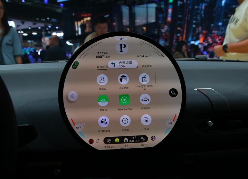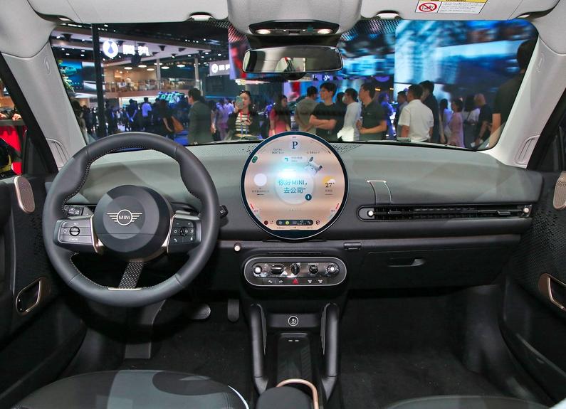 內(nèi)飾加入了大量的圓形元素,包括圓形方向盤、9.4英寸圓形OLED液晶觸控屏幕,中控屏下方設(shè)計(jì)了橢圓形的按鍵區(qū)域。搭載Mini Operating System 9系統(tǒng),內(nèi)置的導(dǎo)航可以提供充電路線規(guī)劃,中控屏可顯示三種模式,分為Core、Green和Go-Kart,每種模式都有自己獨(dú)特的界面設(shè)計(jì)和額外的燈光和聲音效果。