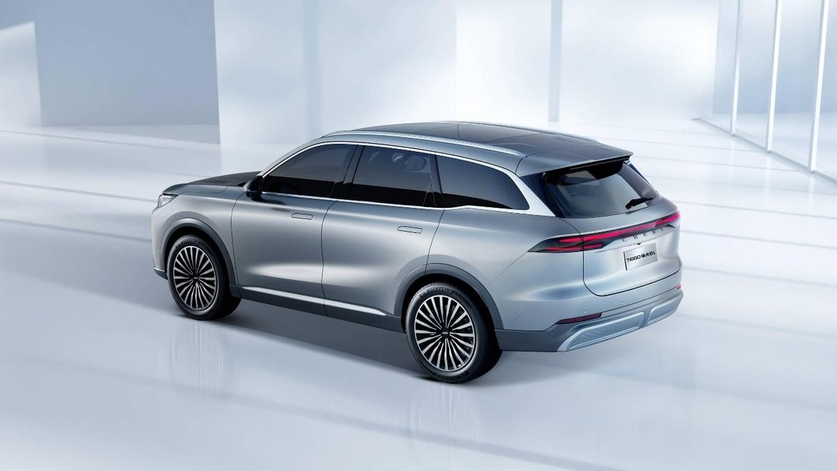 車身側面,整體來看比較簡約,采用了流暢的車身腰線,也比較有層次感,還使用了隱藏式門把手,密輻式的輪轂造型也很有特點,據悉新車將提供18/19/20英寸不同尺寸的輪轂可選。尾部比較圓潤飽滿,采用貫穿式尾燈設計也是比較符合時下的潮流,下方采用雙邊單出的排氣布局。車身尺寸方面,根據此前的申報信息,新車的長寬高分別為4795/1930/1725(1741)毫米,軸距為2770毫米,這個尺寸與目前在售的瑞虎8相比,可以說是在長寬和軸距方面都有所提升。