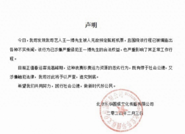 最近男明星王一博被人無故預訂航班,隨后還傳出該行程的各種不實傳聞。其實,王一博本人根本沒有這個行程安排,工作室在查明之后發了嚴正聲明,正值春運客流高峰期,這樣的新聞對王一博本人的口碑造成了非常不好的影響。