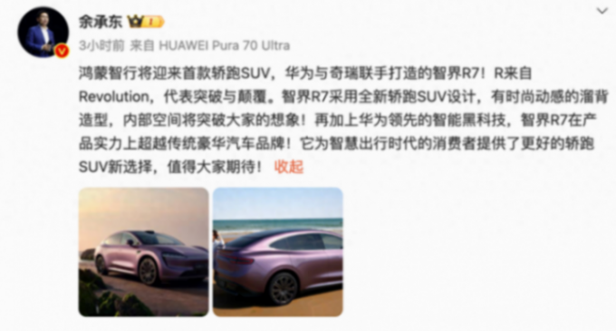 下半年發(fā)布!智界首款轎跑SUV!智界R7官圖發(fā)布!